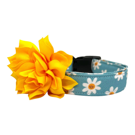 Dainty Blue & Beige Floral Dog Collar with Flower