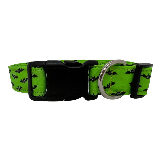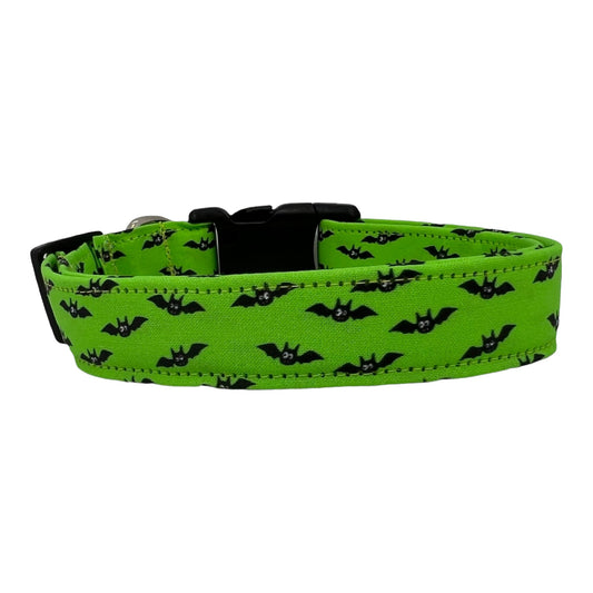 Bright Green Halloween Dog Collar with Black Bat Embellishment