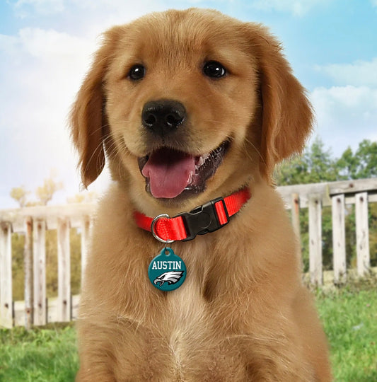 Our personalized dog ID tags are a cute and practical way to help keep your pet safe. Each tag is custom-made with your dog’s name on the front and your contact information on the back. Lightweight, durable, and easy to attach to any collar—these tags are designed to handle all of your pup’s daily adventures while adding a little extra personality to their look.