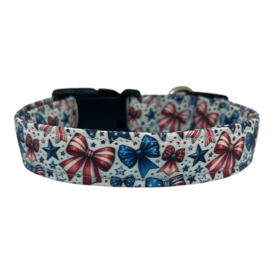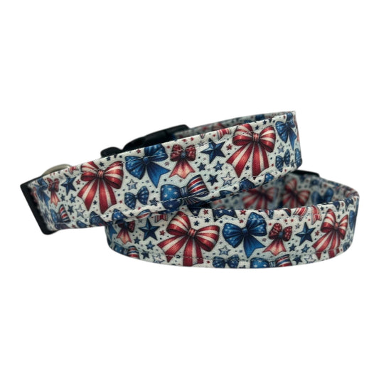Shop our collection of 4th of July and patriotic dog collars, featuring stars, stripes, and red, white, and blue designs perfect for celebrating in style. Find the ideal festive collar for your pup today!