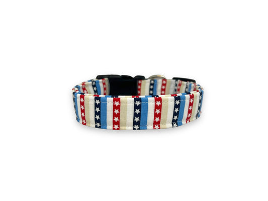 Shop our collection of 4th of July and patriotic dog collars, featuring stars, stripes, and red, white, and blue designs perfect for celebrating in style. Find the ideal festive collar for your pup today!
