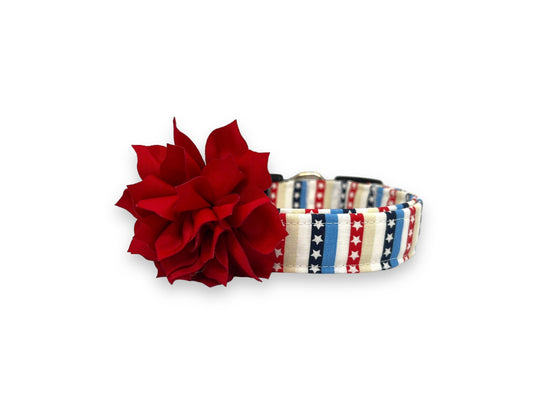Stars and Stripe Dog Collar with Flower