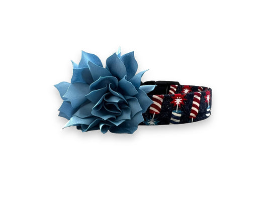 Patriotic Sparkler Dog Collar with Flower