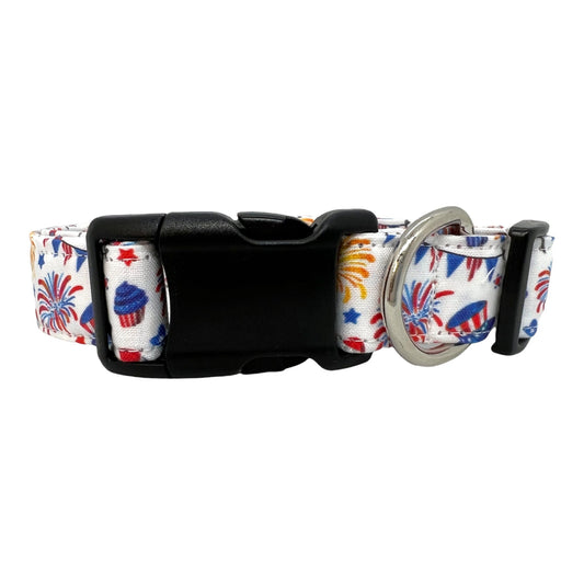 Shop our collection of 4th of July and patriotic dog collars, featuring stars, stripes, and red, white, and blue designs perfect for celebrating in style. Find the ideal festive collar for your pup today!