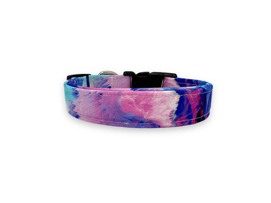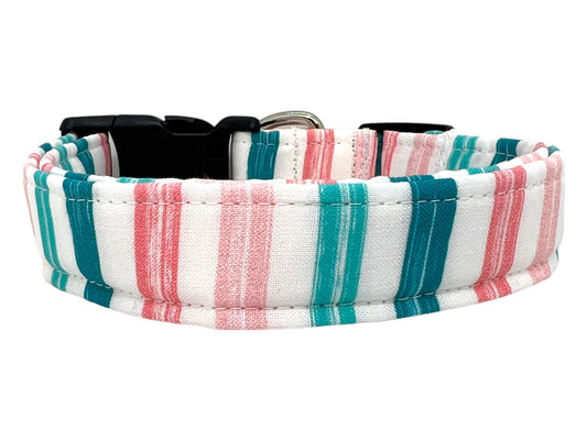 Teal & Pink Watercolor Stripe Dog Collar with Flower