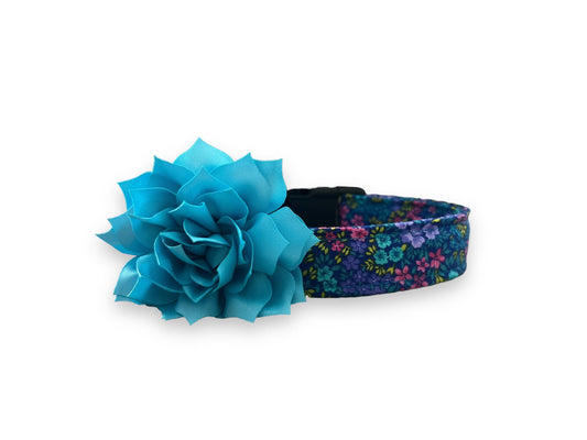 Dainty Blue & Beige Floral Dog Collar with Embellishment