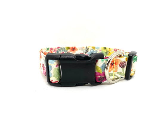 Explore our beautiful collection of floral and plant themed dog collars, featuring delicate cherry blossoms, vibrant daisies, lush ferns and more. Perfect for adding a touch of nature and charm to your pup's style.