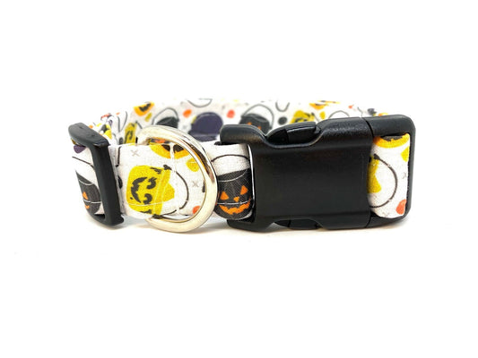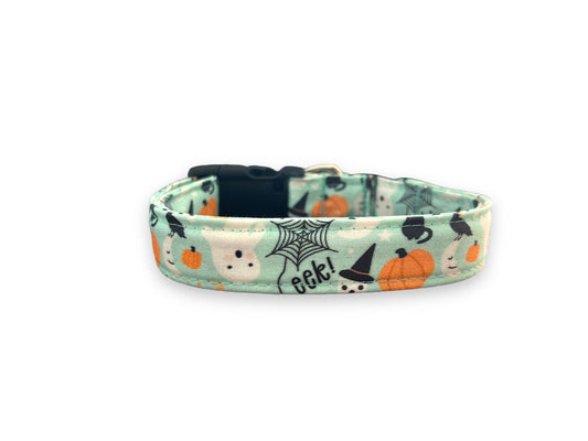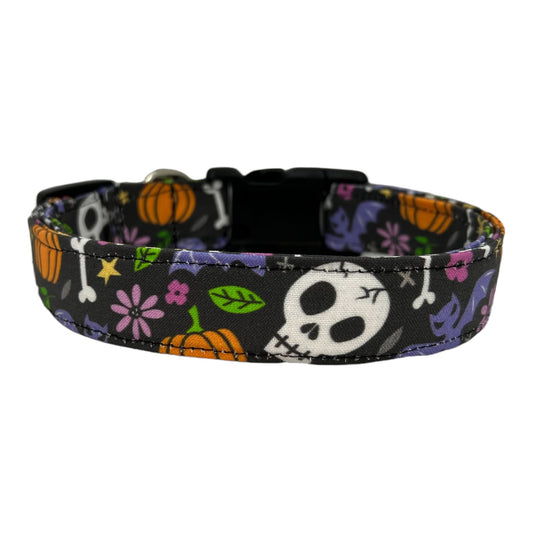 Celebrate the spooky season with our festive Halloween dog collars! From playful pumpkin patterns to eerie skeleton designs, our collection adds a fun, seasonal touch to your dog's wardrobe. Perfect for getting into the Halloween spirit, these collars are sure to make your furry friend the center of attention at any costume event or trick-or-treat outing.
