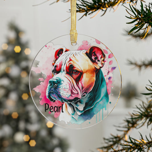 Personalized Watercolor Pit Bull Ornament