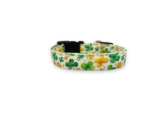 St. Patrick's Day Watercolor Clover Dog Collar with Flower