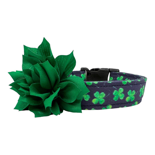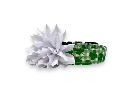 St. Patrick's Day Shamrock Clover Dog Collar with Dog Collar Flower