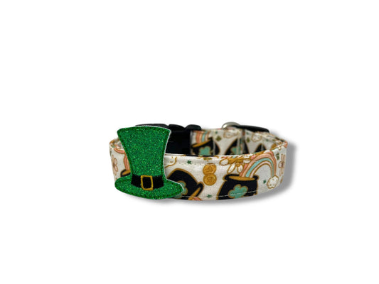 St. Patrick's Day Shamrock Dog Collar with Leprechaun Hat Embellishment