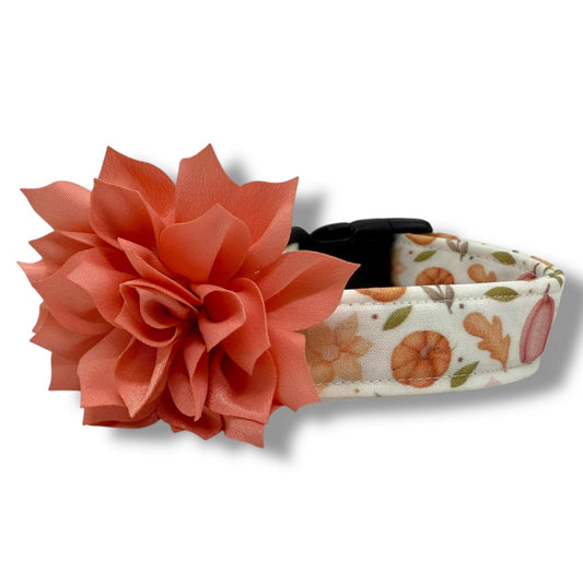Fall Sunflower & Pumpkin Dog Collar with Flower