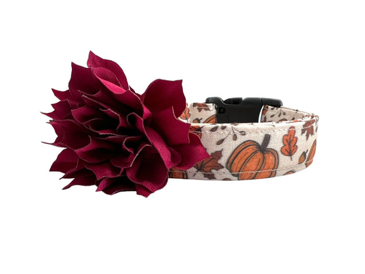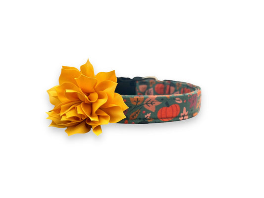 Fall Sunflower & Pumpkin Dog Collar with Flower