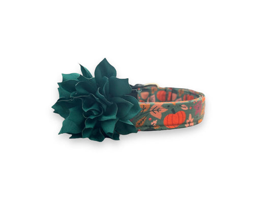 Halloween Sunflower & Pumpkin Dog Collar with Embellishment