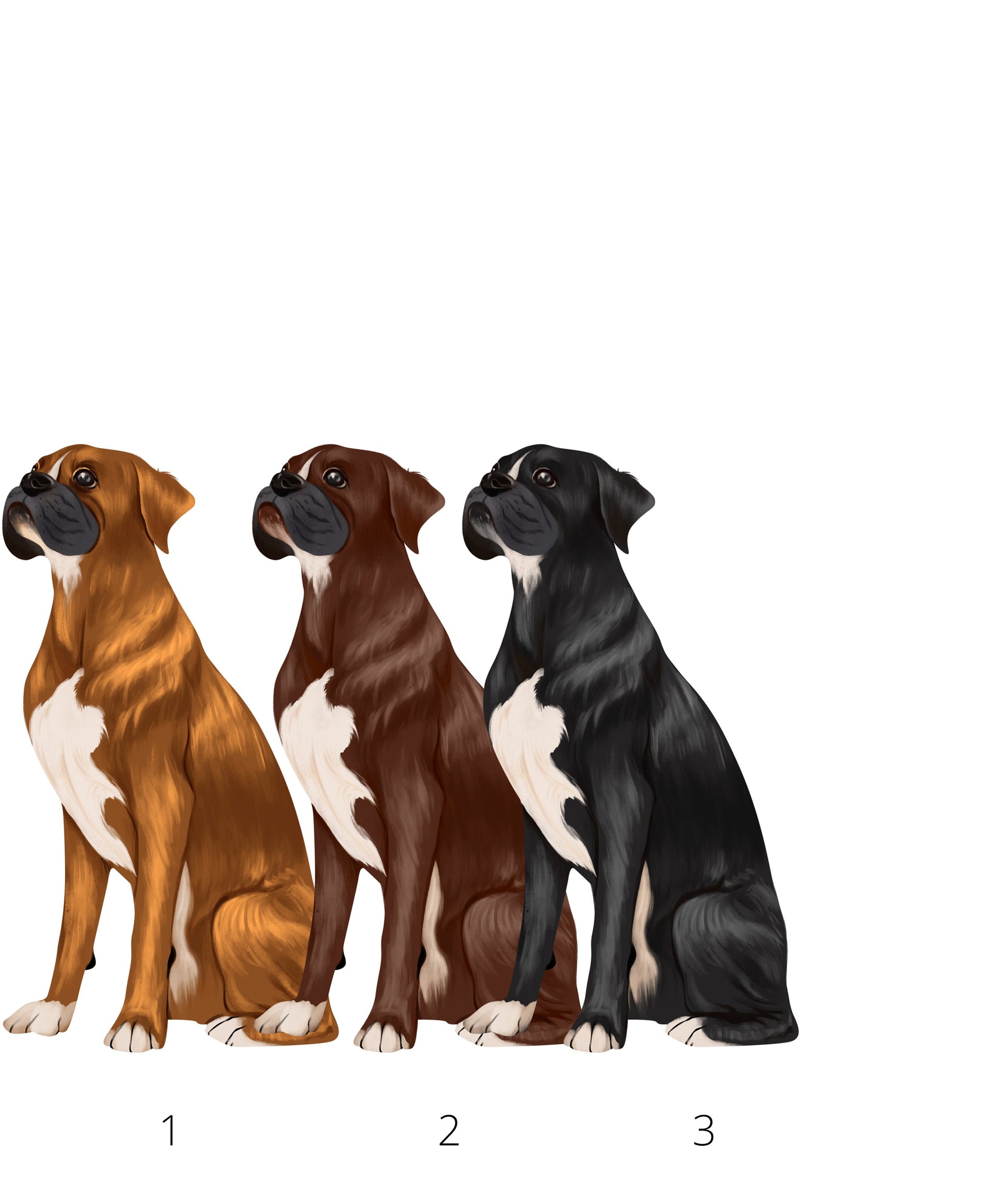 There are three Boxer color variations to choose from, please refer to the photo in the listing to see colors. All color variations will have the Santa hat as shown on the stocking.