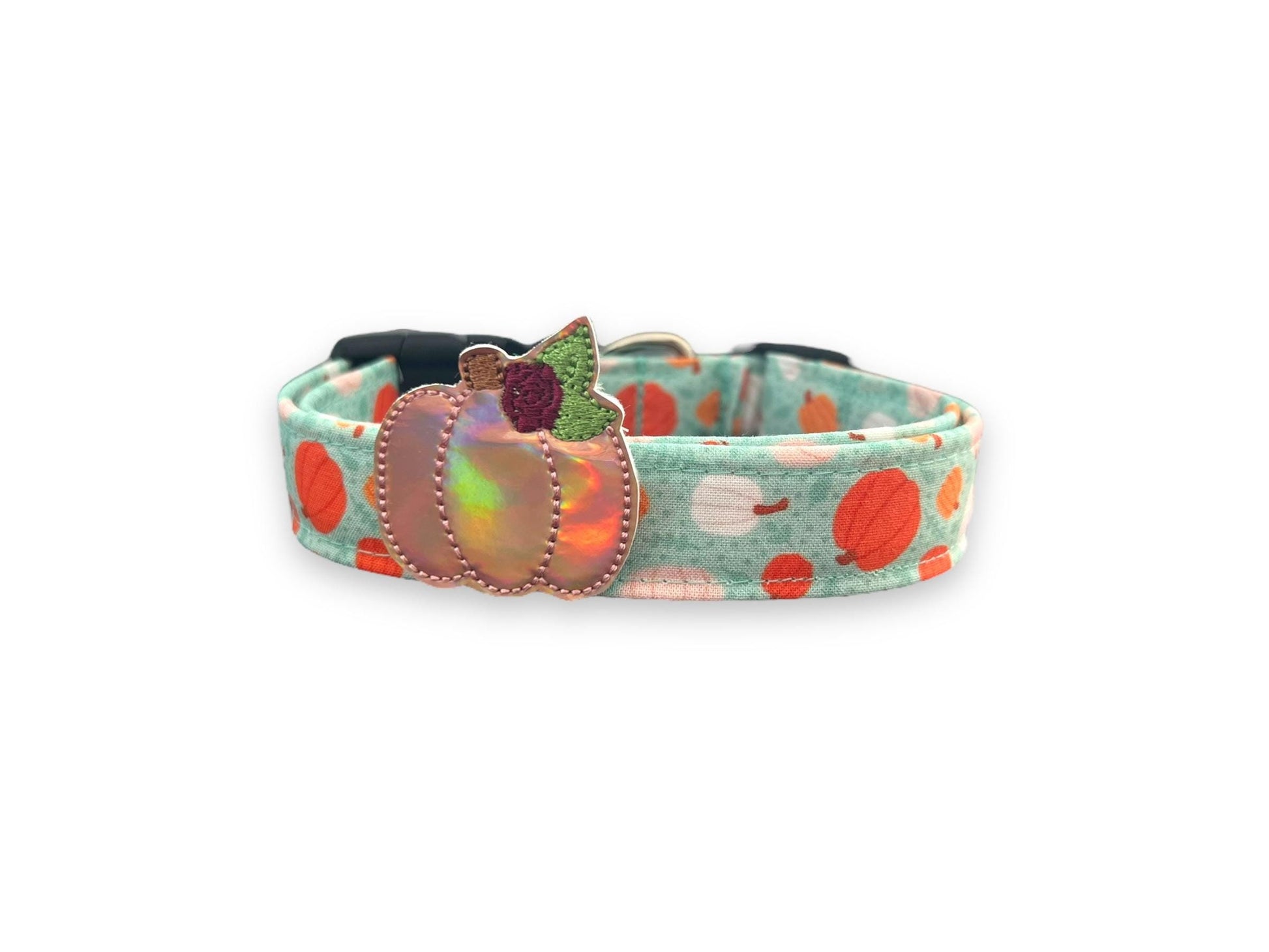 Halloween Dog Collar, Pumpkin Dog Collar with Embellishment, Aqua Pumpkin Dog Collar, Collar for Halloween, Halloween Collar, Halloween Dog