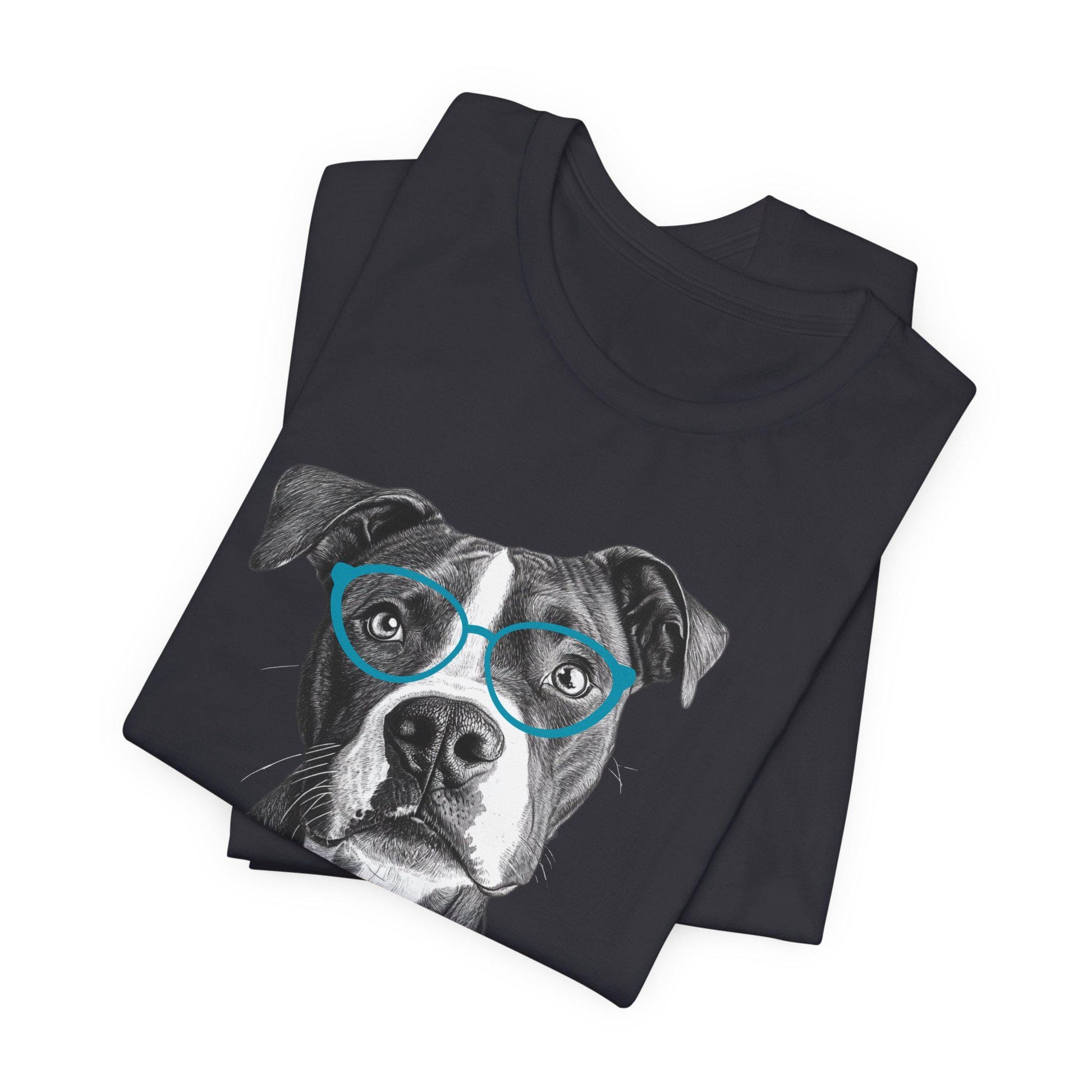 Add some personality to your wardrobe with this fun and stylish pit bull shirt featuring a black and white sketch of a lovable pit bull rocking vibrant aqua glasses. Whether you‘re a proud pit bull parent or just adore the breed, this pit bull shirt is the perfect way to show your love in a cool, artistic way. Made with soft, high-quality fabric, this pit bull shirt is comfortable for everyday wear and makes a thoughtful gift for any dog lover. Stand out and celebrate your favorite pup with this unique pit bull shirt!