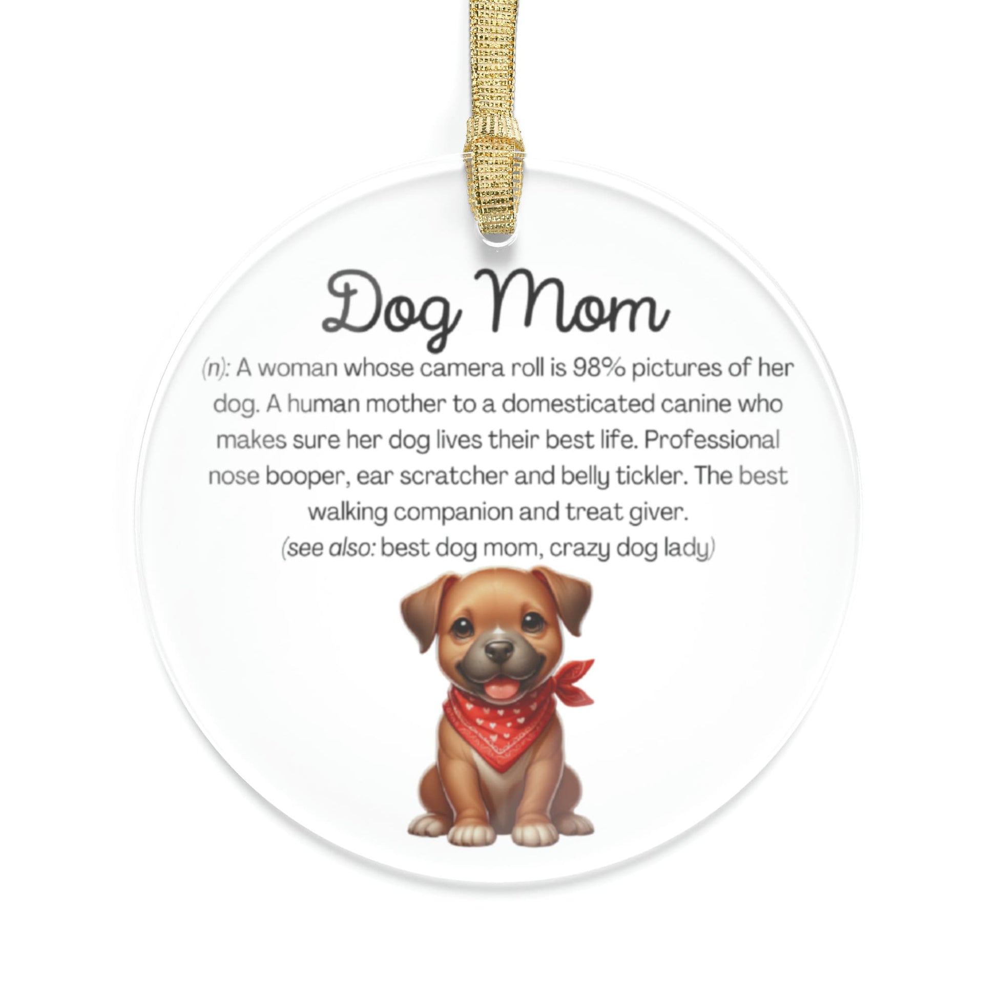 This paw-sitively adorable acrylic dog mom Christmas ornament is the perfect way to celebrate the unsung heroes of the canine world dog moms! It features a heartwarming definition of a dog mom that‘s sure to bring a smile to anyone who‘s ever been a proud pooch parent. The whimsical graphic showcases the charm of a lovable Pit Bull, making it an ideal addition to any dog lover‘s holiday decor. Hang it on your tree or gift it to your favorite dog mom for a touch of festive humor and heartfelt appreciation. Because let‘s face it, being a dog mom is a full-time job filled with love, laughter, and a sprinkle of slobbery kisses and this ornament captures that special bond in a truly pawesome way! This ornament measures 3.5" around and includes a gold string that ensures easy and stylish hanging.