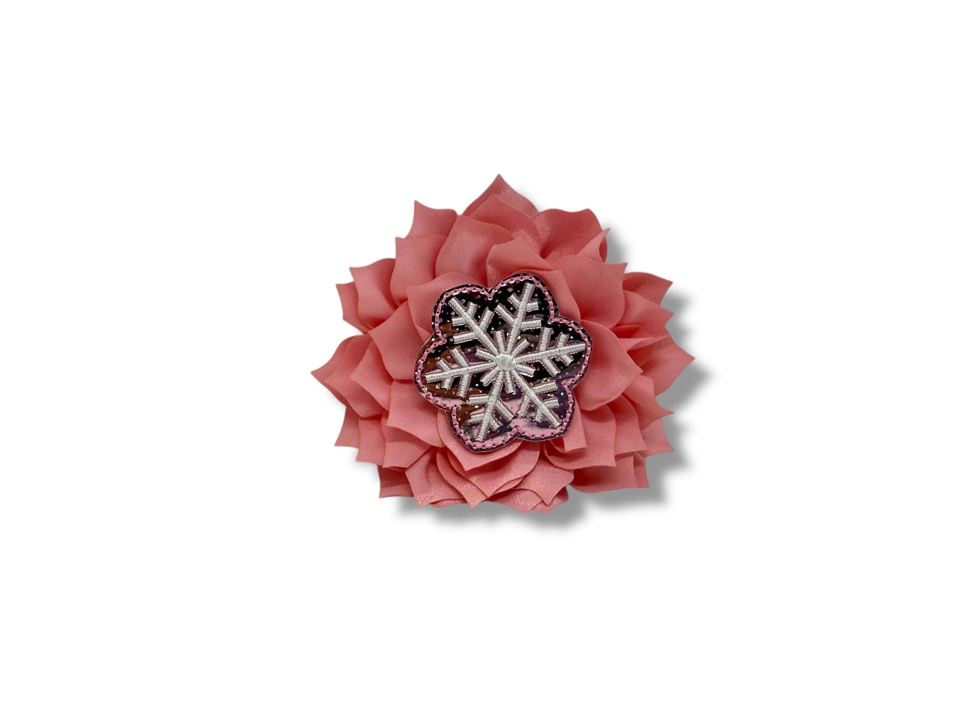 This iridescent pink snowflake dog collar flower adds a touch of winter sparkle to your pup’s style! Centered with a shimmering snowflake embellishment, it sits on a soft 4" light pink fabric flower for a sweet and festive look that’s perfect for snowy strolls, holiday photos, or just spreading seasonal cheer. The elastic loop on the back allows you to easily slip it on and off your dog’s collar in seconds—no fuss, just adorable. Also available in a 3" size with slightly less prominent petals for a more subtle shimmer. A magical accessory for the prettiest snow pup in town!